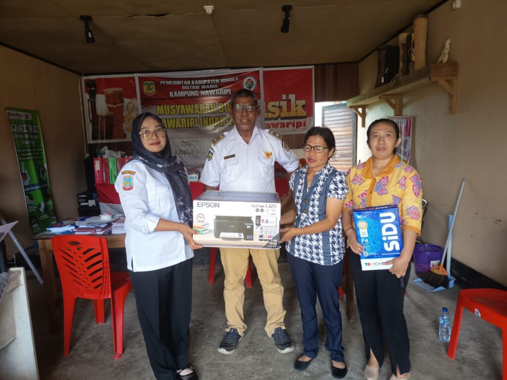 MIMIKA | TK dan Pendidikan Usia Dini (PAUD) Merah Putih menerima bantuan satu unit printer bermerk Epson dan alat tulis berupa kertas satu rim dari Pemerintah Kampung Nawaripi, pada Rabu (29/4/2026) di Sanggar Merah Putih.